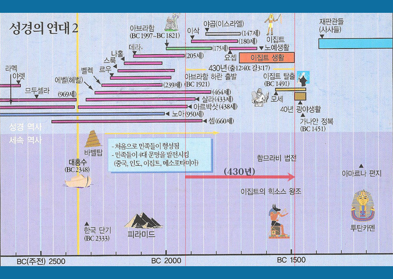 참고로, [성경연대기]들에 대한 자료들중 해당부분(빨간 세로줄 2개사이,430년)를 잘 살펴보세요. 더 잘 이해가 됩니다.