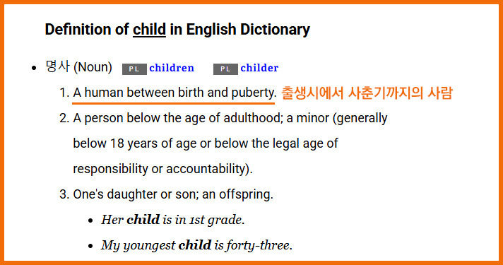여기에서 한가지, 'child'라는 단어의 의미가 고대,중세영어에서는 '아기'(baby)의 의미와 '(사춘기) 어린아이'까지의 의미를 같이 동시에 포함하고 있었다는 사실입니다.
