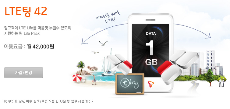 LTE팅42요금제의 경우 : 데이터통화 1GB → 2GB 제공)