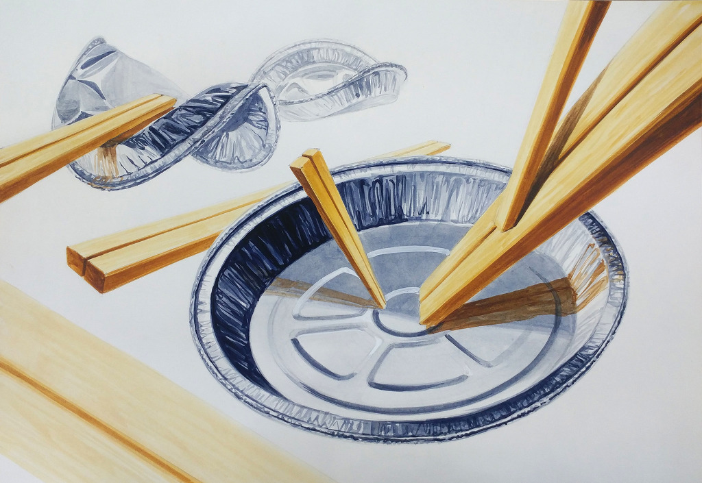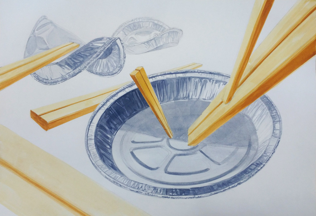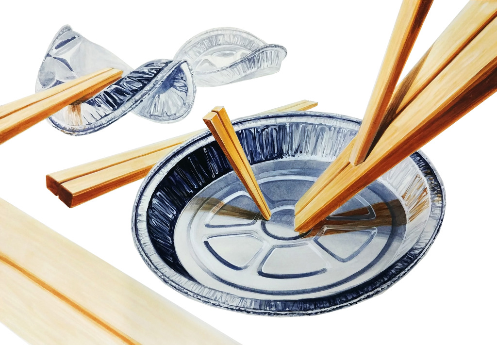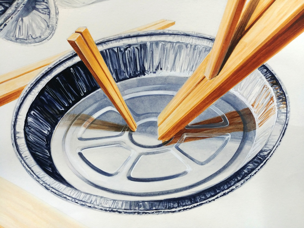 그리고 은박접시에 반사되는 나무젓가락도 표현해 줍니다.