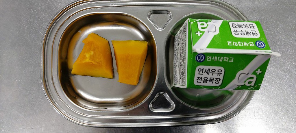 청경채된장국, 순살가자미구이, 배추나물(호박볶음)