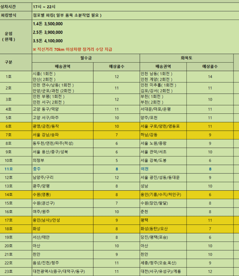 시간 : 출근(17시- 22시 사이)- 6시간
