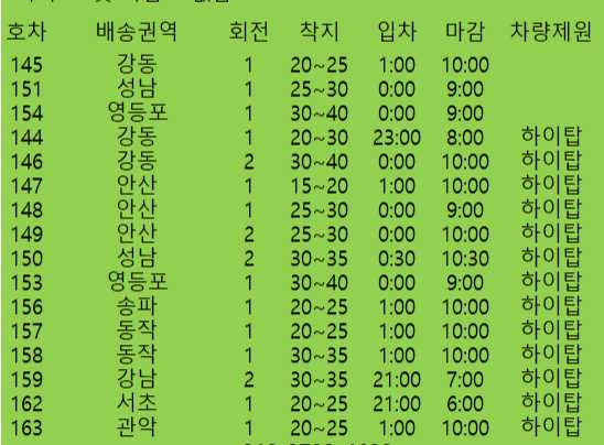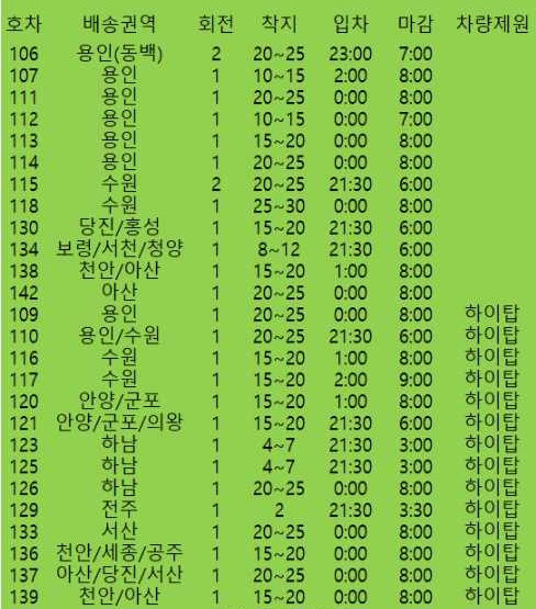 시간 : 아래 도표참조