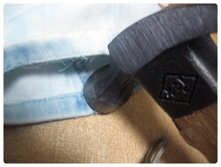 일단 망치로 때려서 밑단 자체를 납작하게 해주시구요(다리미로는 잘 안 되요..)