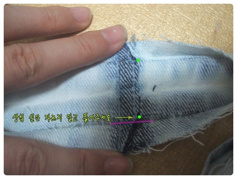 대부분 청바지 안쪽이 상침이 되어있거든요)