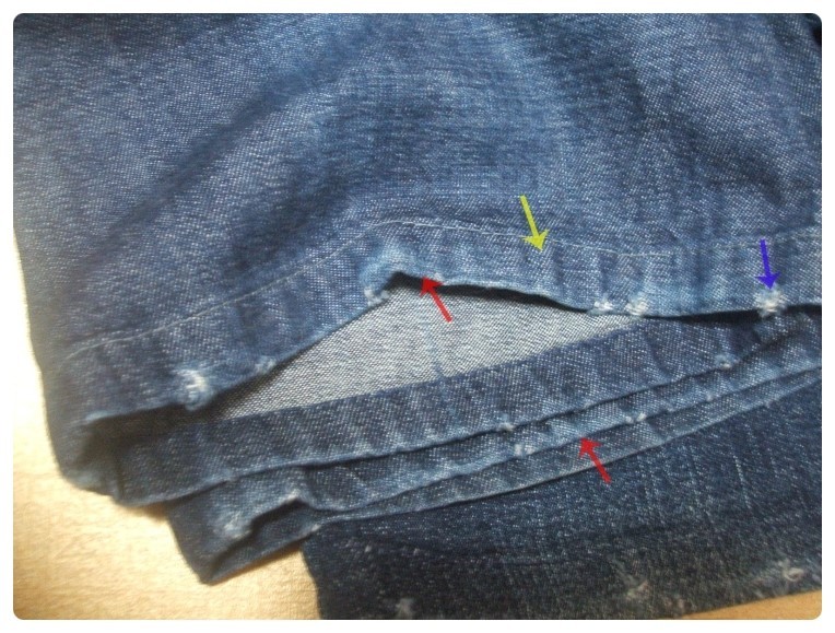 일반 실의 경우 크게 표시나지 않지만, 청바지 스티치사는 두꺼워서 표시가 나요..
