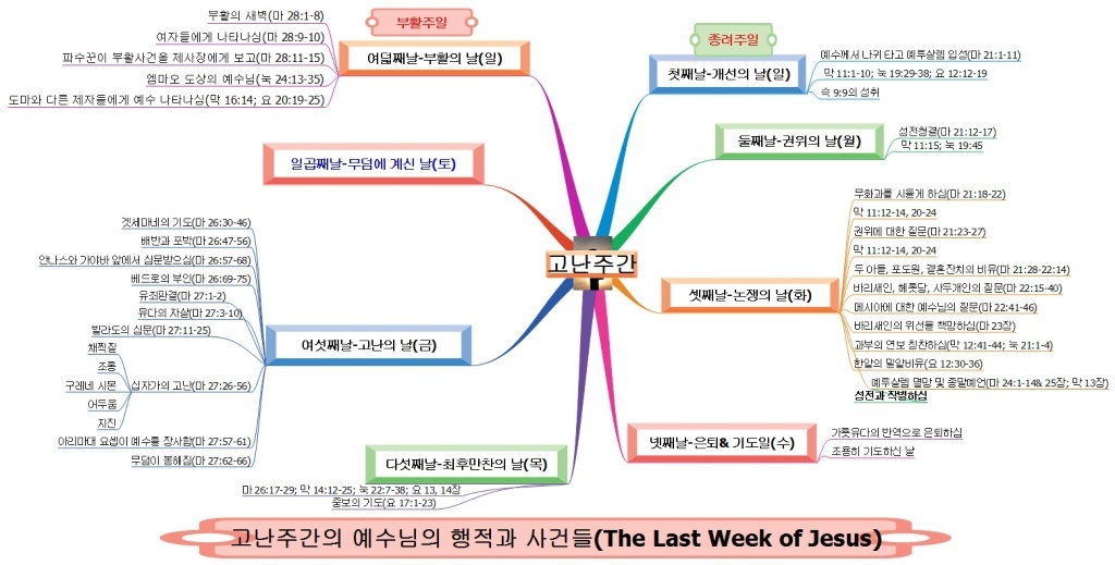 고난주간(예수님의 마지막 한주간)에 일어난 일들