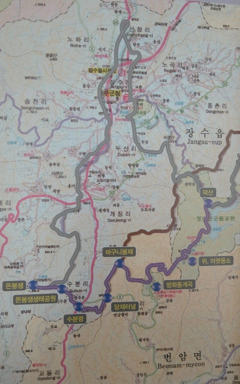 ○ 공간 : 장수군 덕산 ~ 방화동계곡 ~ 방화교 ~ 당재 ~ 수분 13.7km