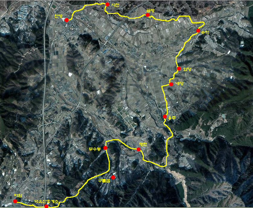 ○ 공간 : 무주안성 마암 ~ 구름샘 ~ 명천 ~ 용추 ~ 내외당 ~ 수락 ~ 시전 ~ 안성 17km
