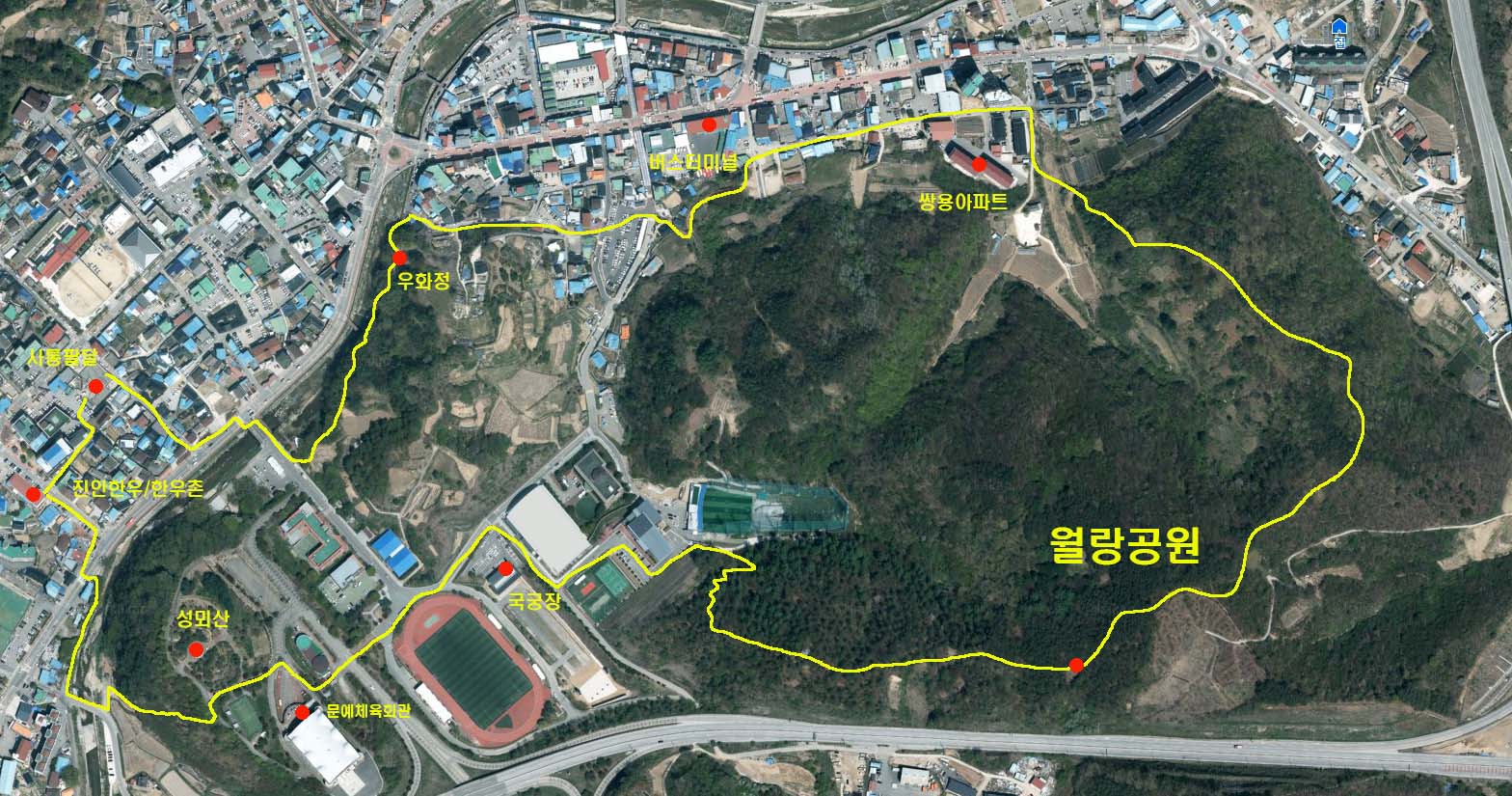 (13시00분) 걷기. 식당~성뫼산~월랑체육공원~월랑공원~우화정~사통팔달센터 5㎞