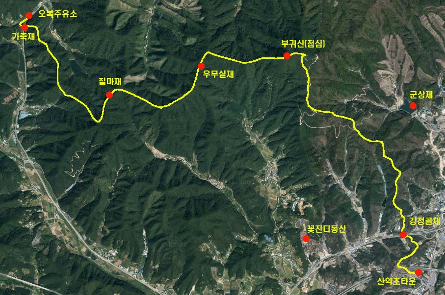 13:00 - 15:30 걷기. 부귀산~우무실재~질마재~가죽재 5㎞