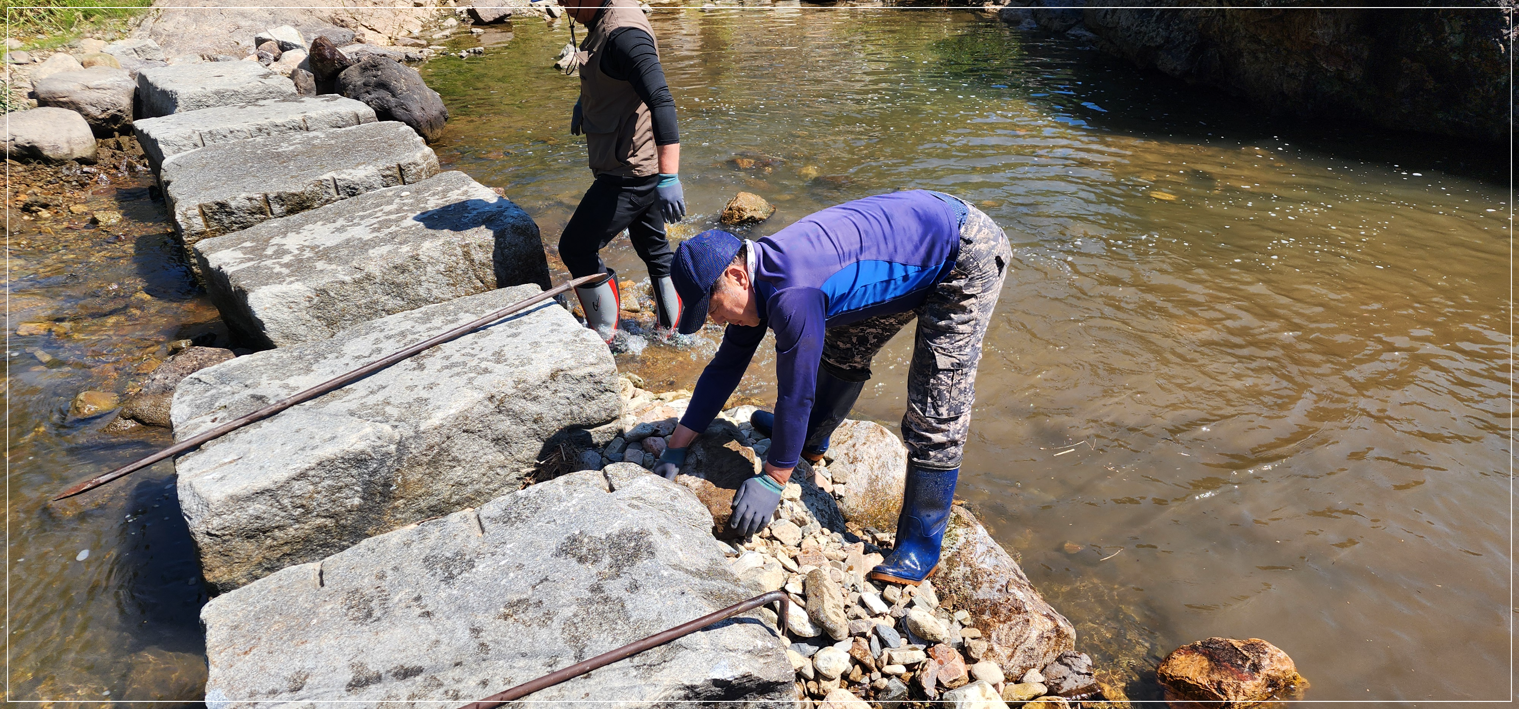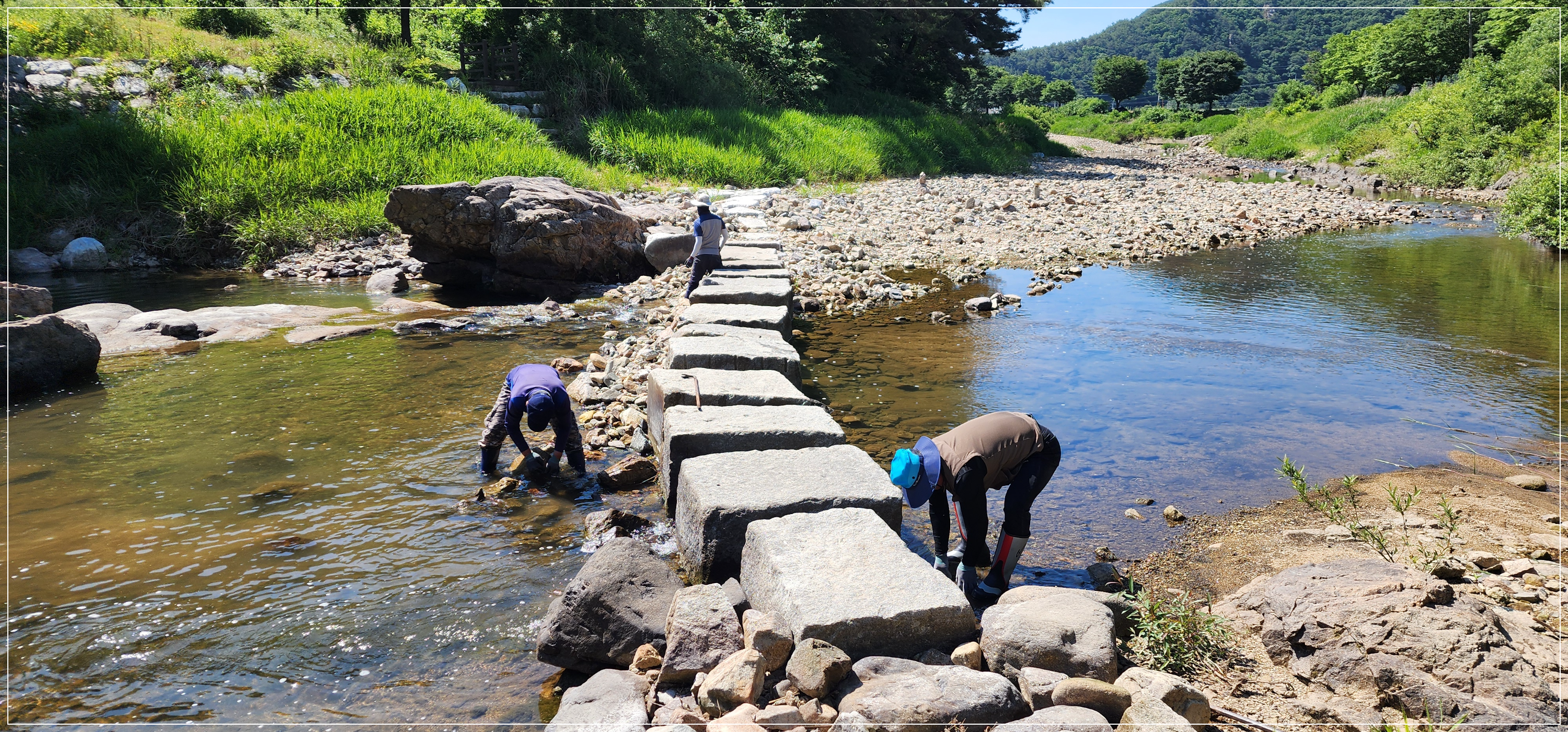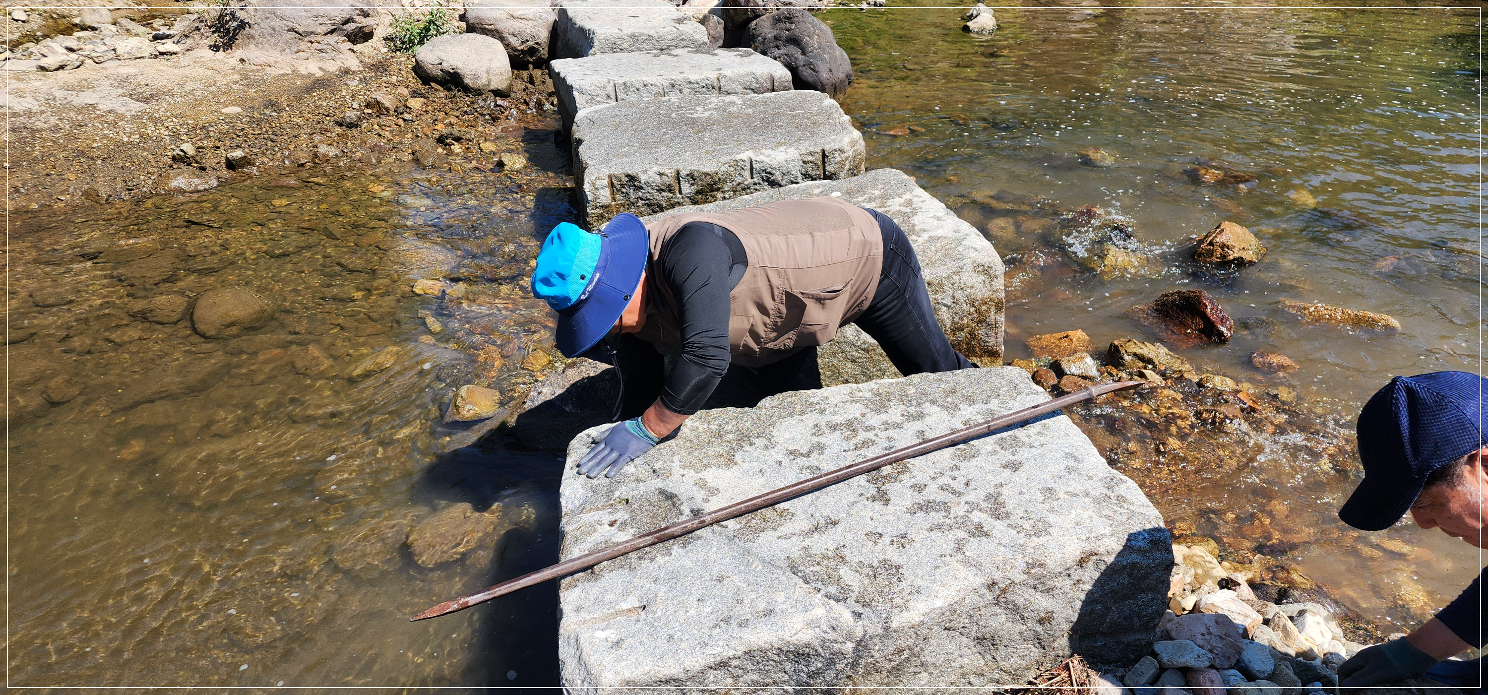 와룡암 징검다리 사이사이 물길을 막고있던 돌들을 치우러