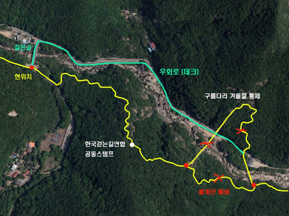 비고. 한국걷는길연합 공동스템프는 찍은 후 칠은교로 다시 회귀.