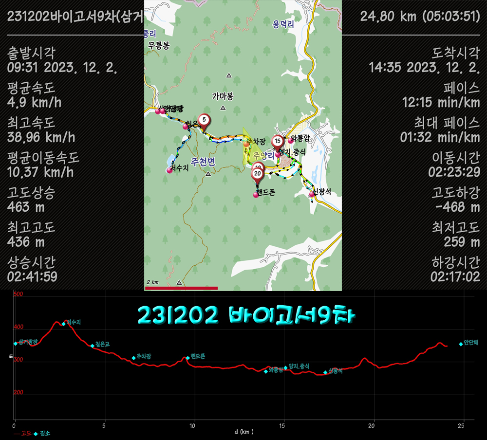 ㅡ. 코스 : 삼거 - 칠은교 - 저수지 - 주차장(간식) - 닭밭골 - 양지(중식) - 와룡암 - 양지(핸폰) - 신광석 - 닭밭골(핸폰) - 삼거