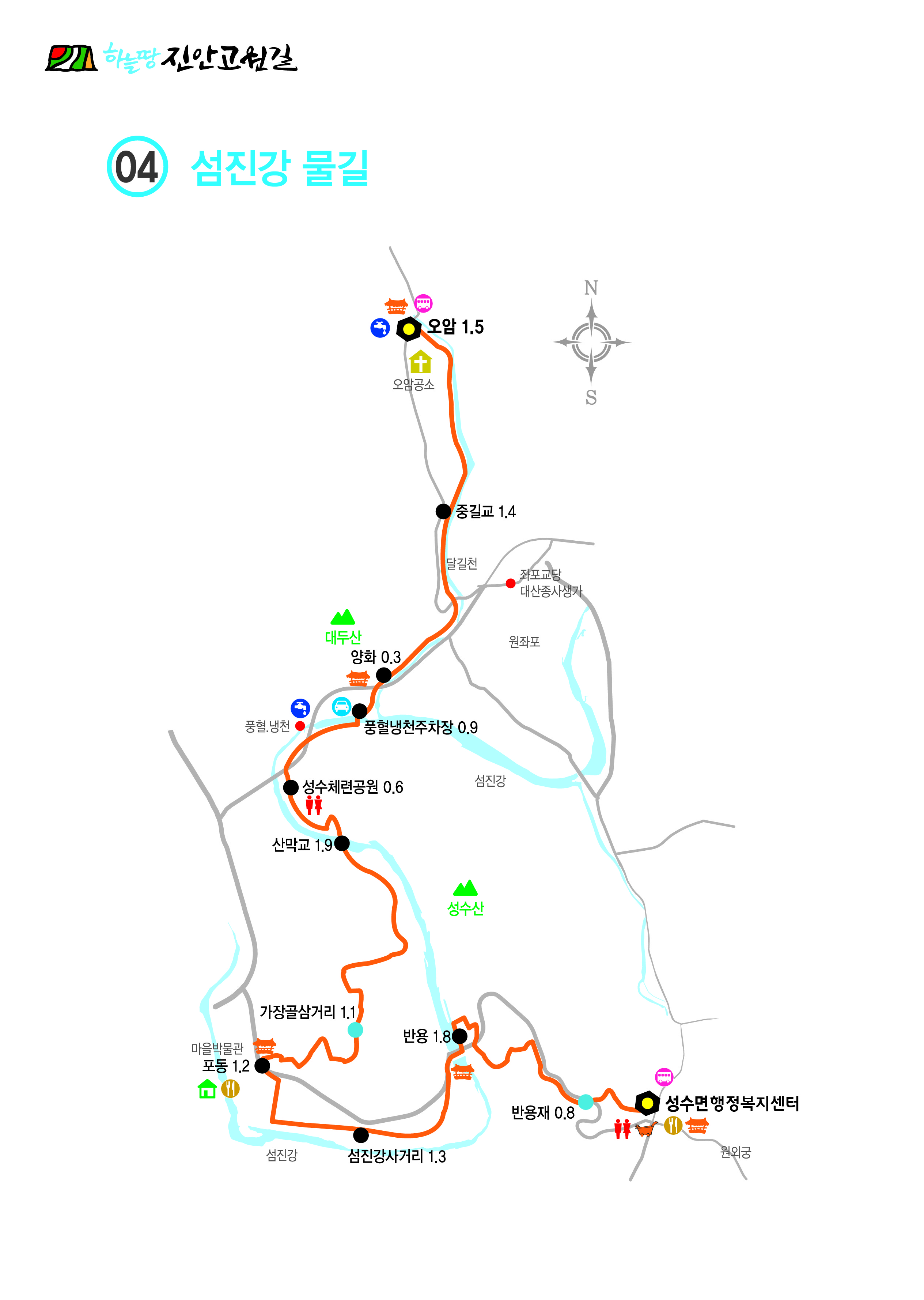 | 09:20 - 09:30 | 버스이동 | 성수 – 오암 (6㎞) | ||