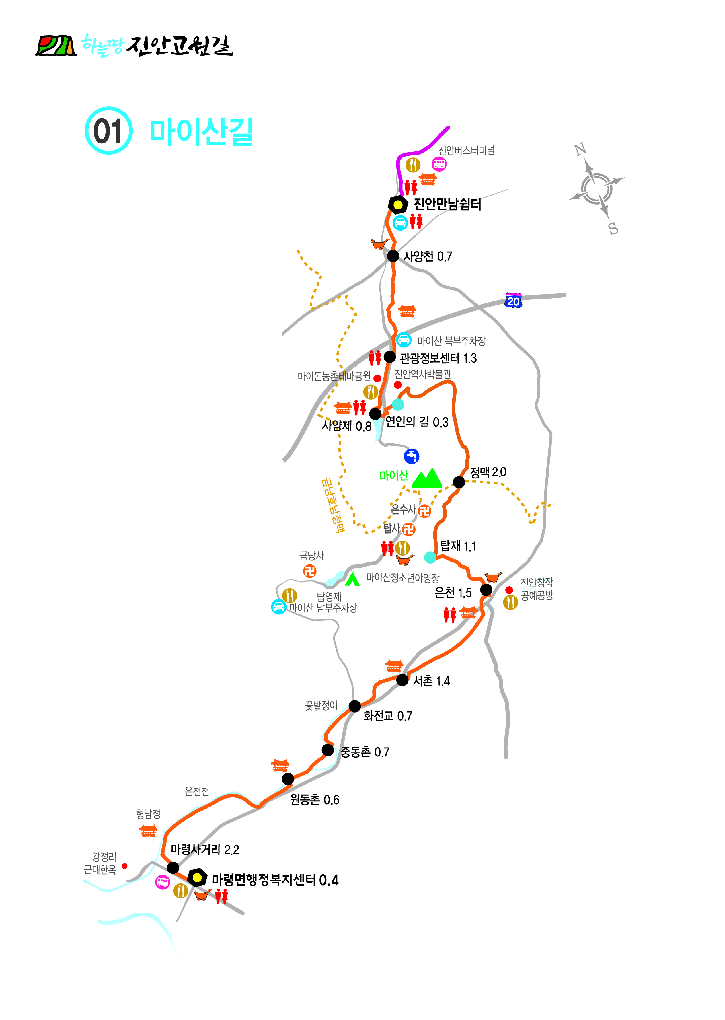 | 15:30 - 16:00 | 버스이동 | 마령 - 진안 (11km) |