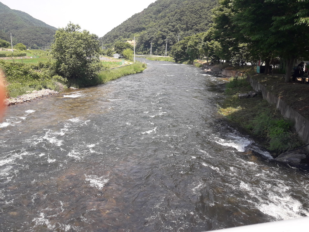 강폭은 훨씬 넓어져 있고 강바닥에는 돌이 많은지 하얀 거품을 일으키며 여울져 흐릅니다.