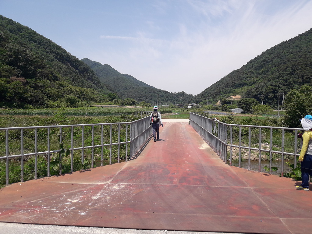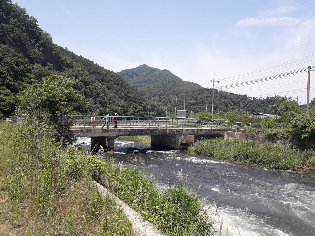 왼쪽 둑길은 겨우 4백미터 쯤만 걷고 다시 다리를 건너 오른쪽 둑으로 바꿔 탑니다. 절벽을 만나게 되기 때문이지요.