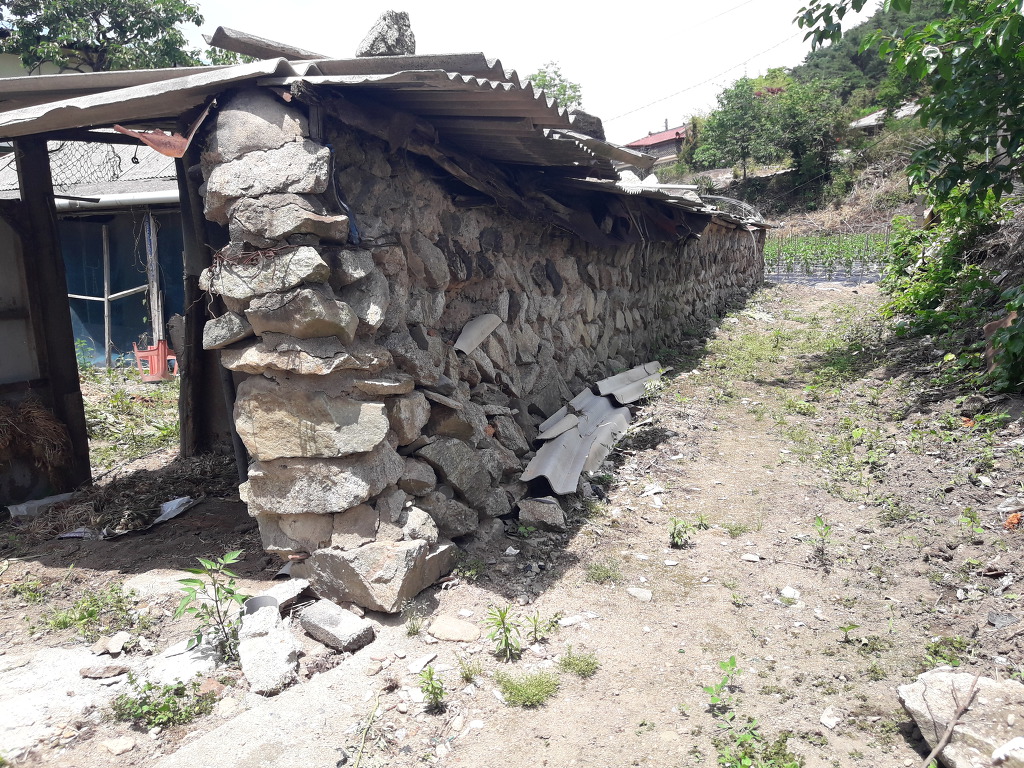 봇도랑 끝에는 강한 물길이 마을을 때리지 못하도록 높이 시멘트벽을 쌓아 올렸습니다. 그 때문에 절벽과 강물의 절경은 많이 훼손되었군요(이 사진은 찍지 않았습니다).