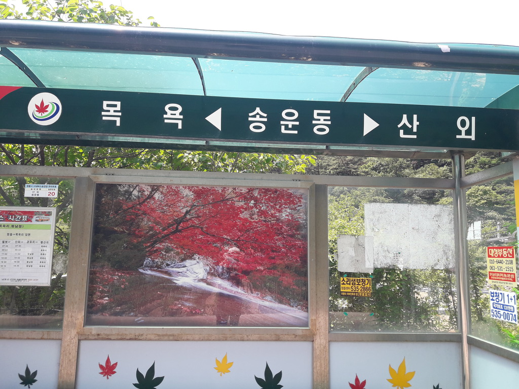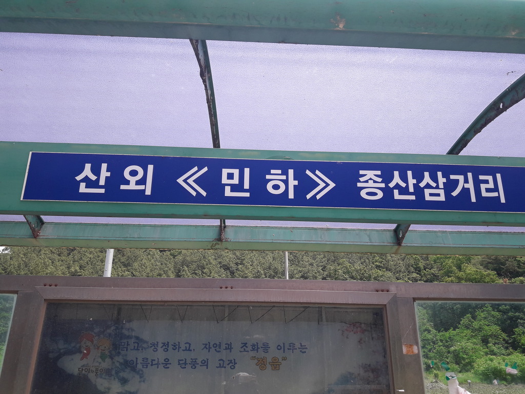 민하마을 입구의 정자에 앉아 잠시 쉬기로 했습니다.