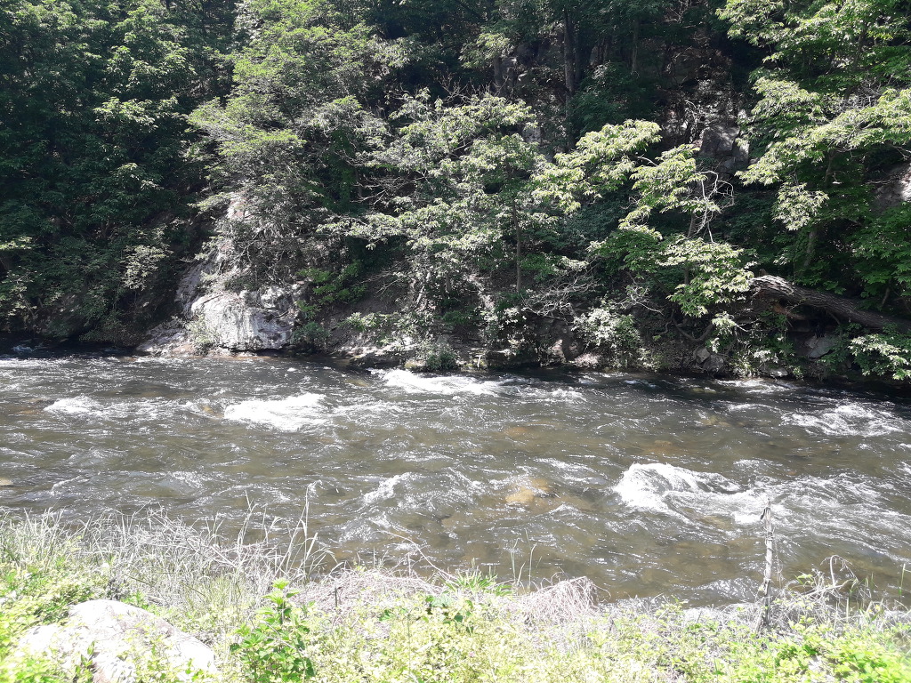 강변의 경치도 좋아지기 시작합니다. 절벽이 자주 눈에 띄면서 역시 그래도 산골짜기를 흐르는 강의 상류라는 것이 확실히 증명되고 있네요.