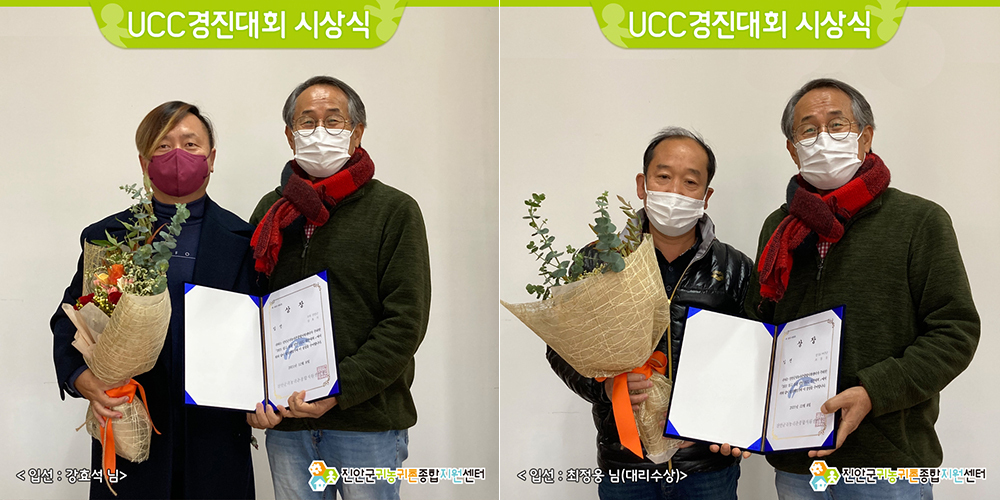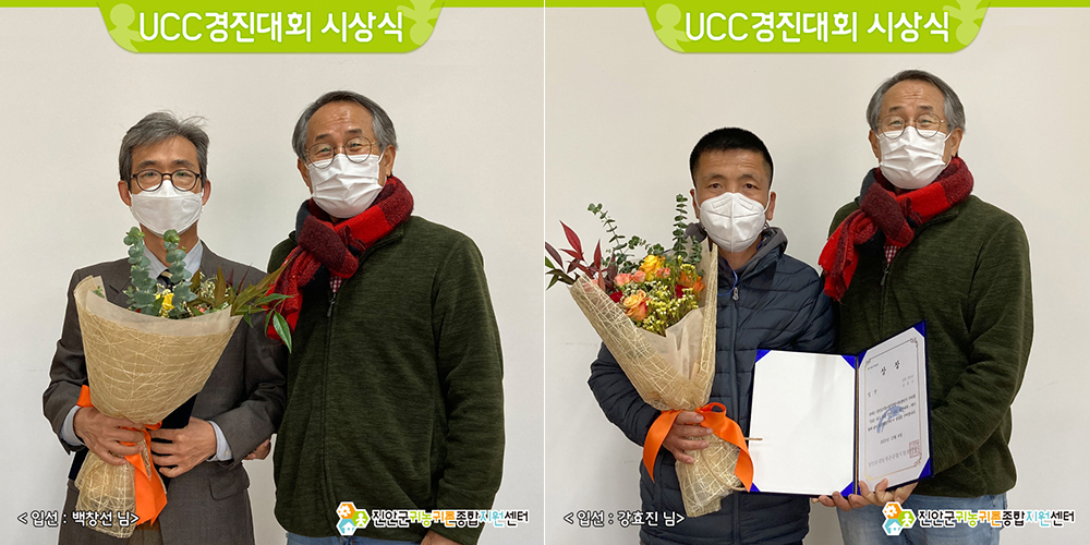 대상 1작품과 입선 5작품, 총 6작품의 당선자 분들께 상장과 꽃다발을 드리며