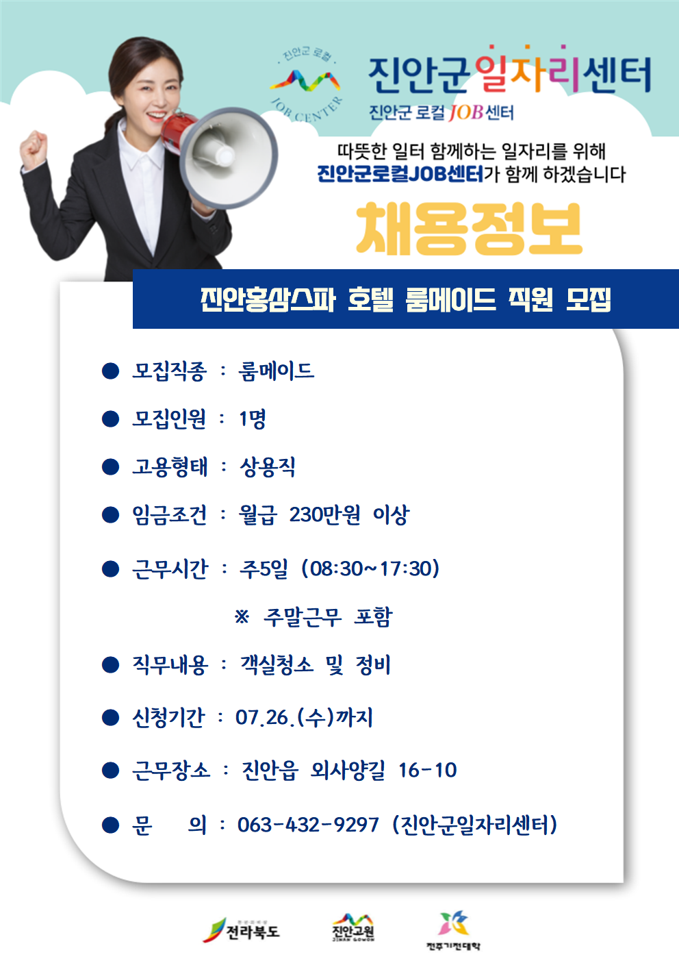 [채용마감]진안홍삼스파 호텔 룸메이드 직원 모집 안내 작성자사무국(오세훈)|작성시간23.07.05|조회수57 목록 댓글 0 글자크기 작게가 글자크기 크게가 다음검색 현재 게시글 추가 기능 열기 북마크 공유하기 신고 센터로 신고 댓글 댓글 0 댓글쓰기 답글쓰기 댓글 리스트