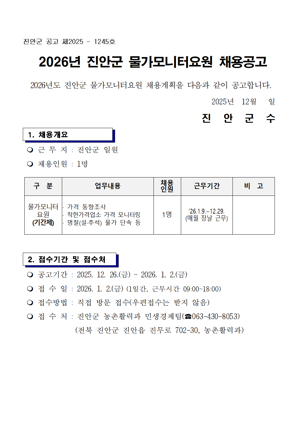 3. 공고기간 : 2025. 12. 26.(금) ~ 2026. 1. 2.(금)