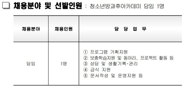 진안군청소년수련관 직원을 아래와 같이 채용합니다.