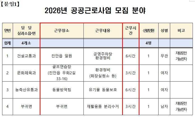 붙임 : 2026년 공공근로사업 참여자 모집 공고 1부. 끝.