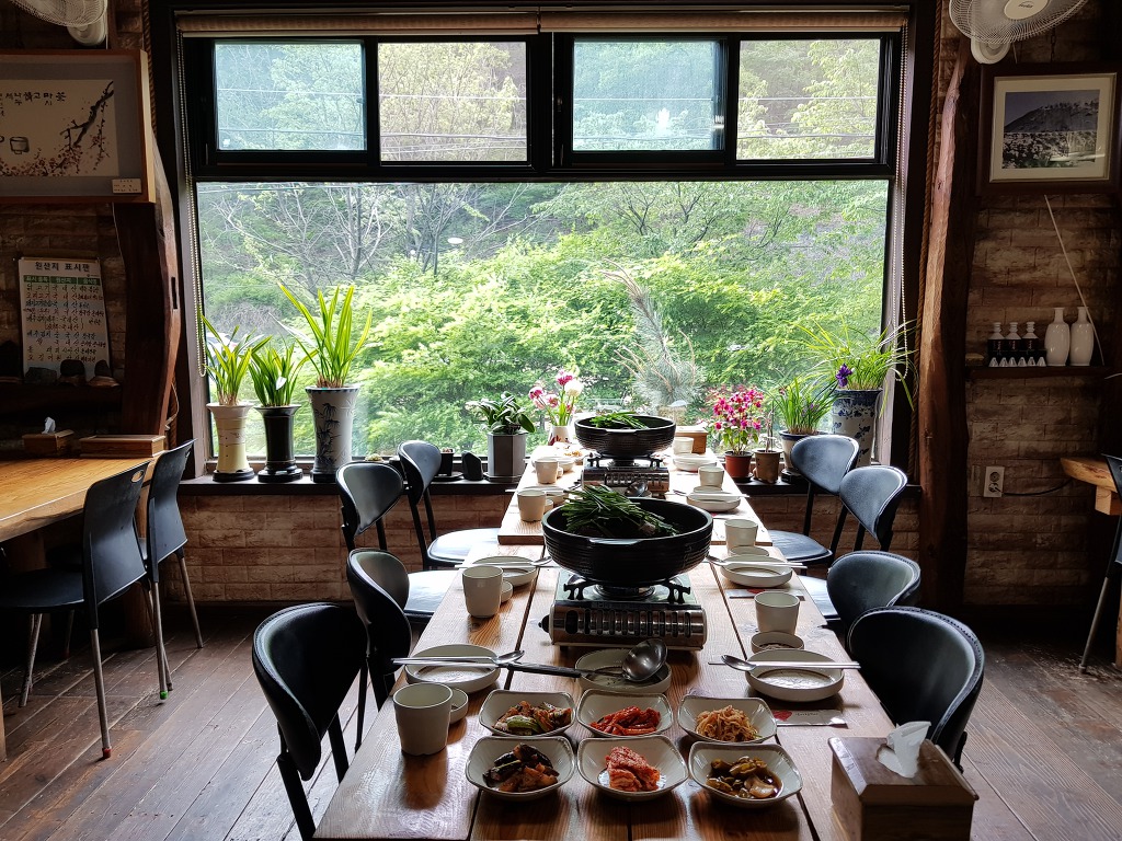 농다리천년사랑은 주변경관과 실내 분위기에 취하고 건강식 음식맛에 반해 전국에서 몰려드는 유명한 맛집이다.