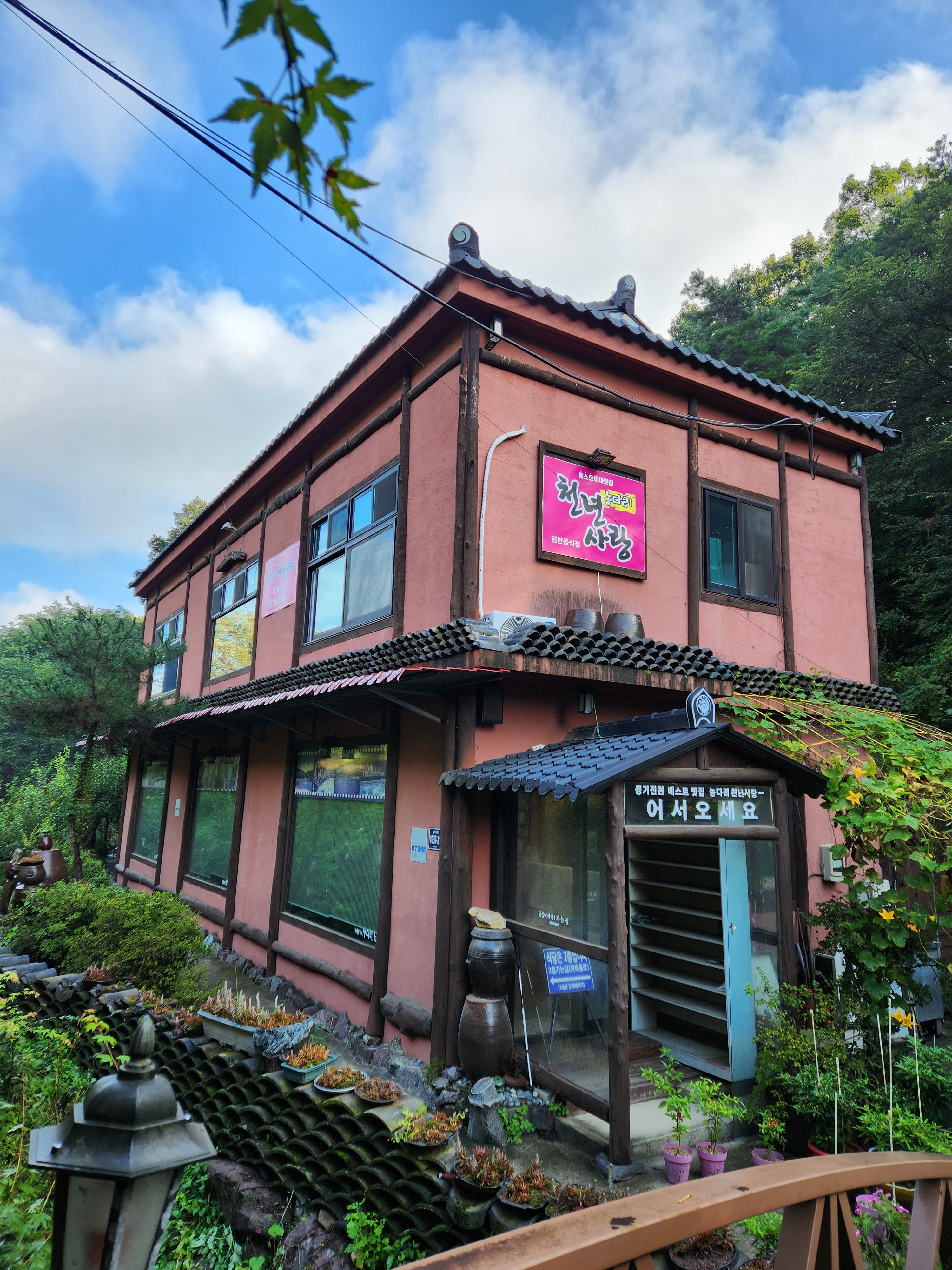 또한 농다리에서 250여 미터에 자리한 그림같은 붉은색의 기와지붕을 덮고 있는 2층 건물이 진천 맛 집 "농다리천년사랑"이다.