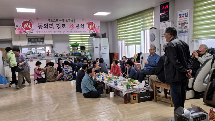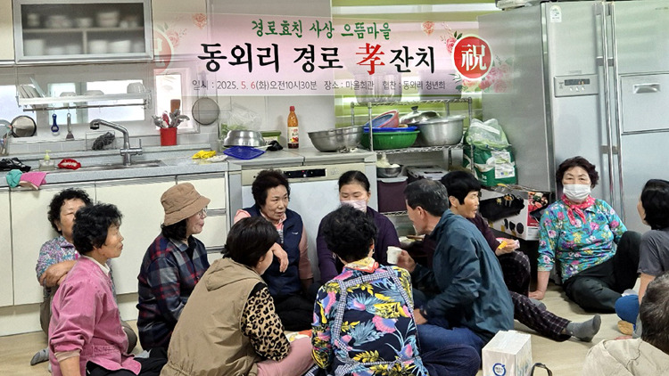 경로효친 사상 으뜸마을 동외리 경로 효(孝)잔치가 2025년 5월 6일(화요일) 마을회관에서 동외리 청년회 협찬으로 열렸습니다