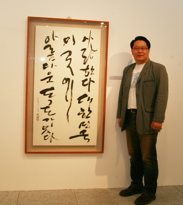 작품명. 왼쪽 '독도는 우리의 영토(嶺土)입니다. 오른쪽 "사랑한다 대한민국 이 곳에 아름다운 독도가 있다."