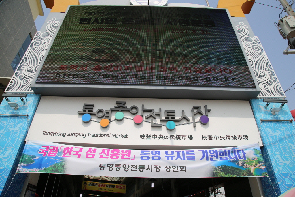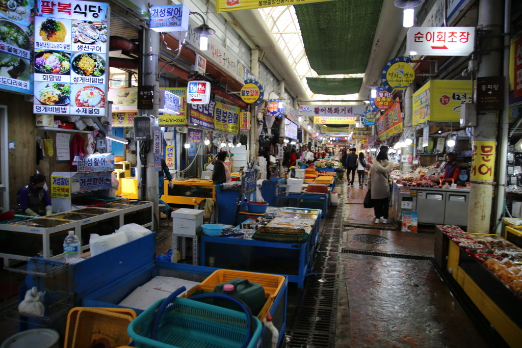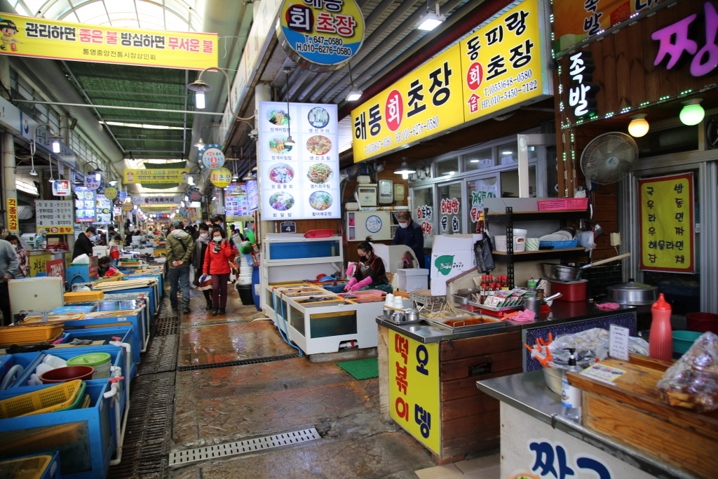 통영중앙전통시장은 주변의 강구안과 동피랑 벽화마을, 남망산 조각공원, 통제영지 등으로 인한 관광객들의 대량 유입으로 다른 곳은 모두 불황을 겪을 때에도 중앙시장의 활어좌판 아주머니들과 건어물 판매상인들 만큼은 대박 호황을 누리고 있다.