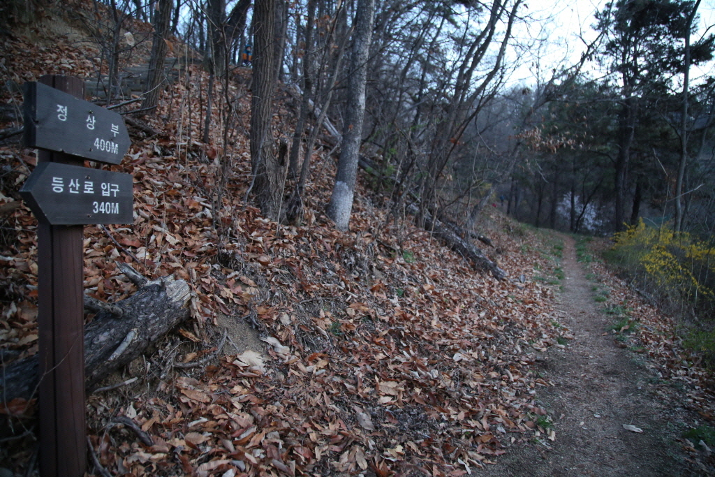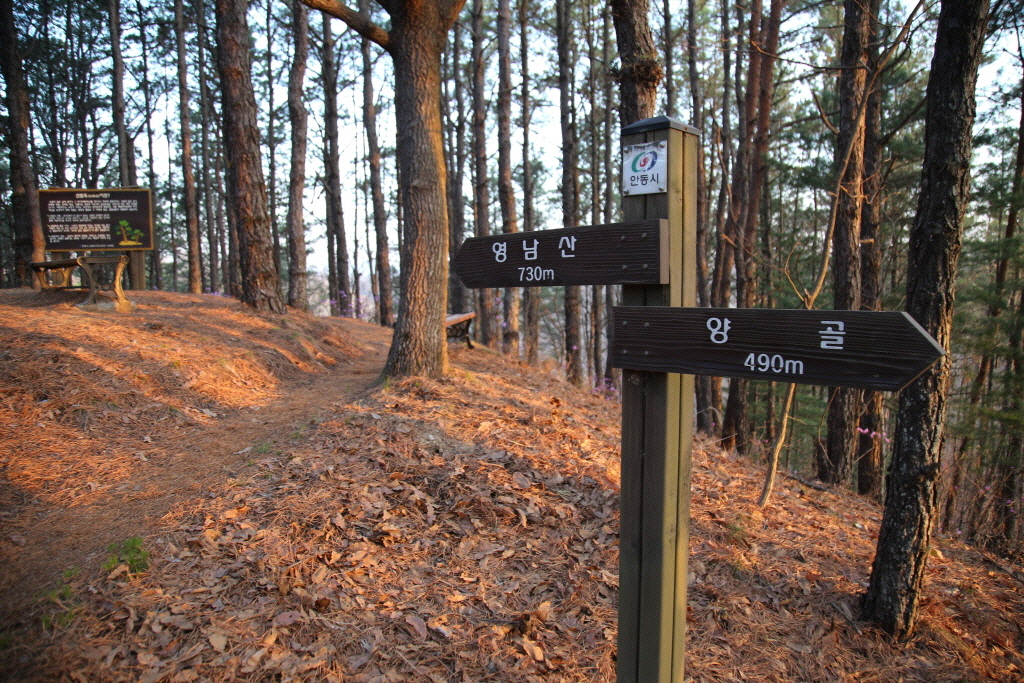 울창한 숲길과 흙길을 따라 걷다보니 나지막한 영남산 정상에 도착하였다.