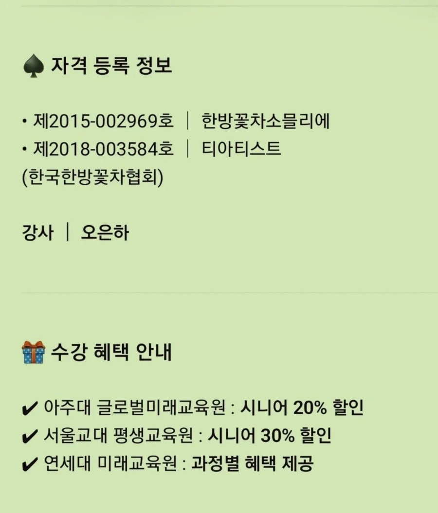 ♠ 자격 등록 정보 : 한국한방꽃차협회(주)