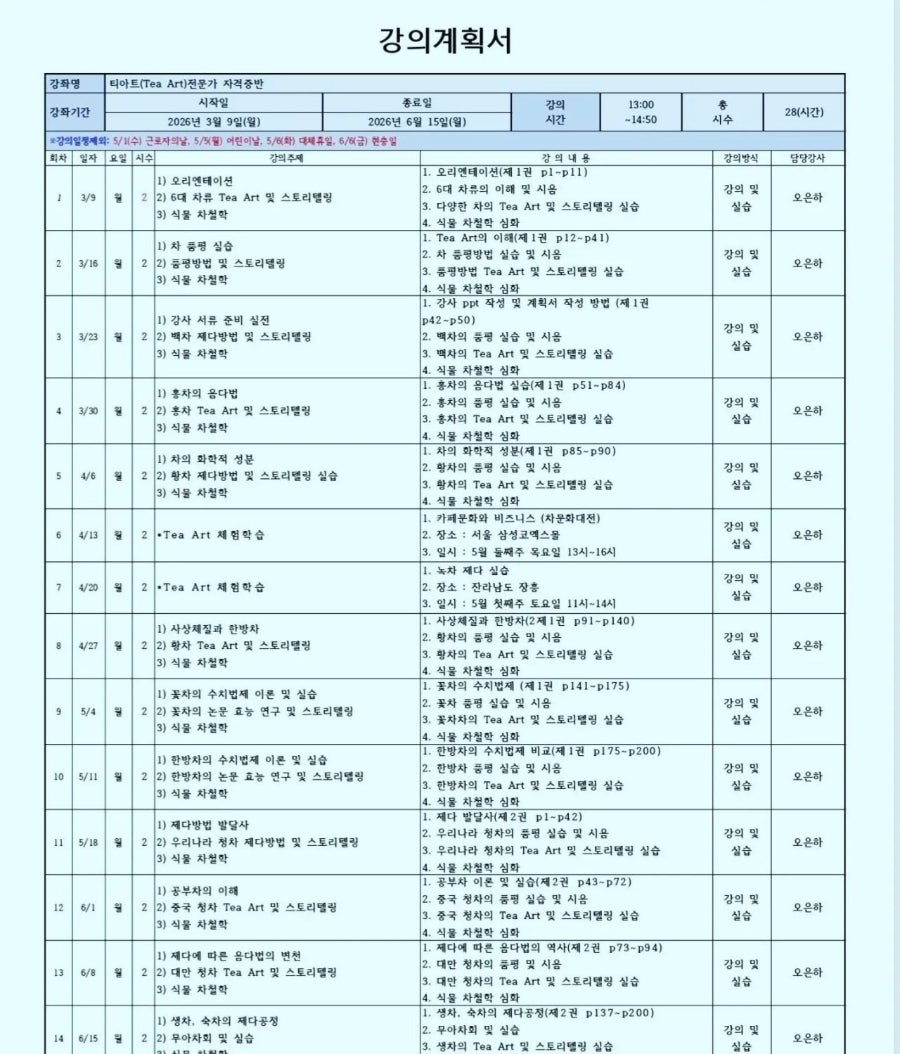 월 13:00–14:50 │ 티아트 Tea Art