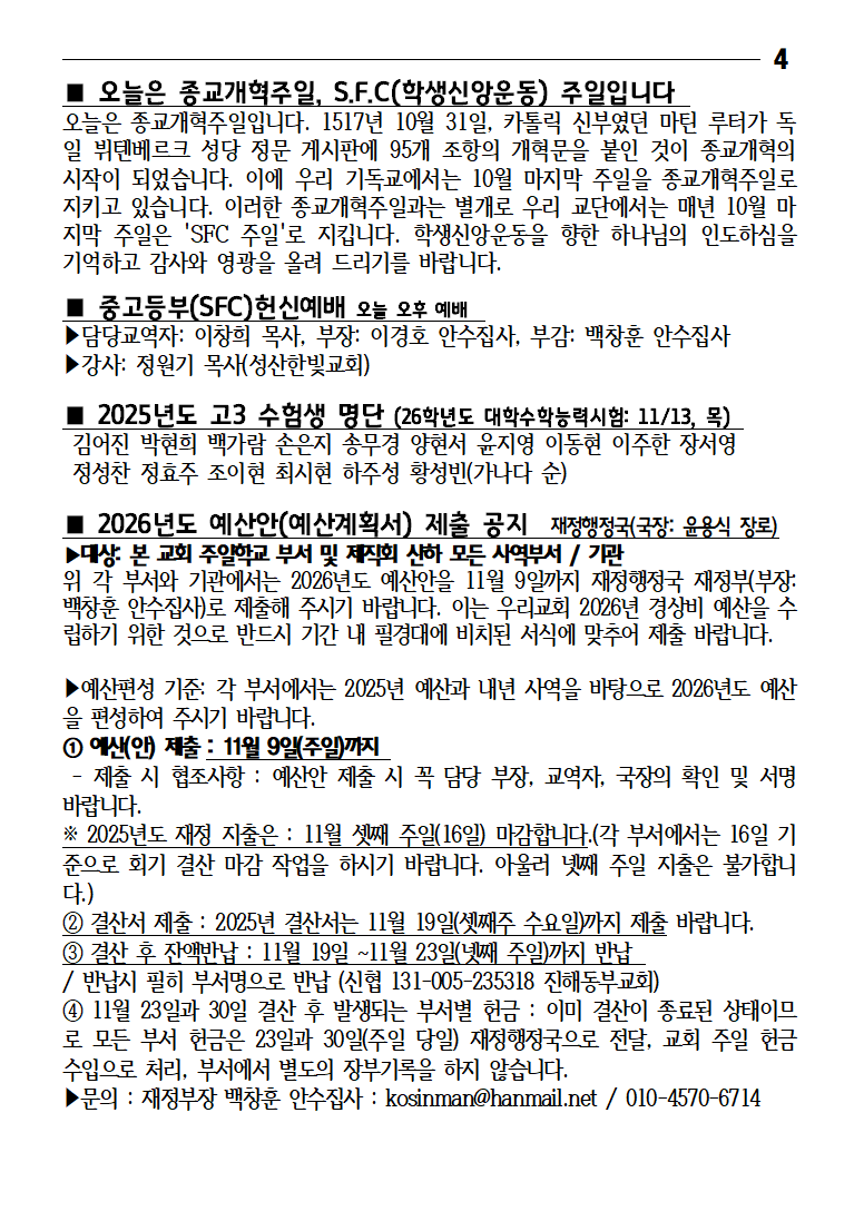 2025-10-26 넷째 주일 주보 작성자박윤숙|작성시간25.10.24|조회수296 목록 댓글 0 글자크기 작게가 글자크기 크게가 다음검색 현재 게시글 추가 기능 열기 북마크 신고 센터로 신고 댓글 댓글 0 댓글쓰기 답글쓰기 댓글 리스트