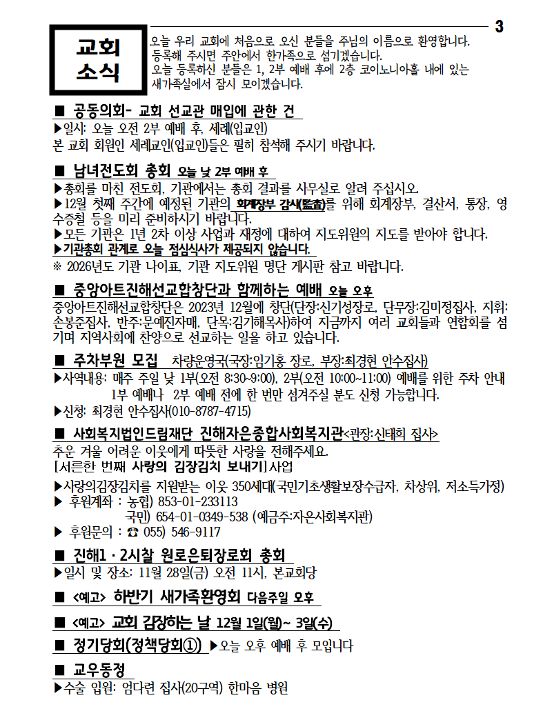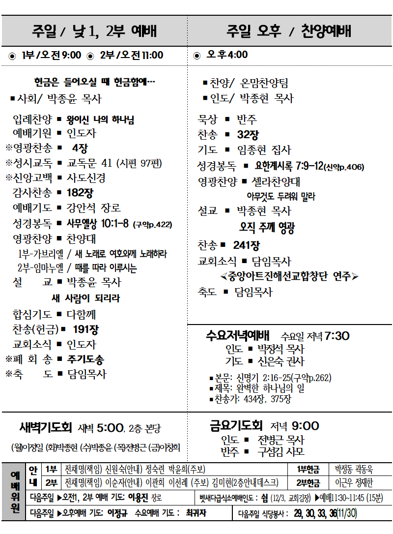 2025-11-23 넷째 주일 주보 작성자박윤숙|작성시간25.11.21|조회수261 목록 댓글 0 글자크기 작게가 글자크기 크게가 다음검색 현재 게시글 추가 기능 열기 북마크 신고 센터로 신고 댓글 댓글 0 댓글쓰기 답글쓰기 댓글 리스트