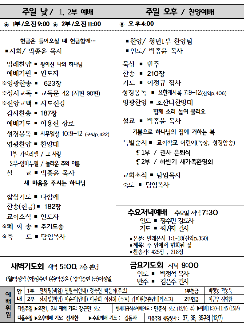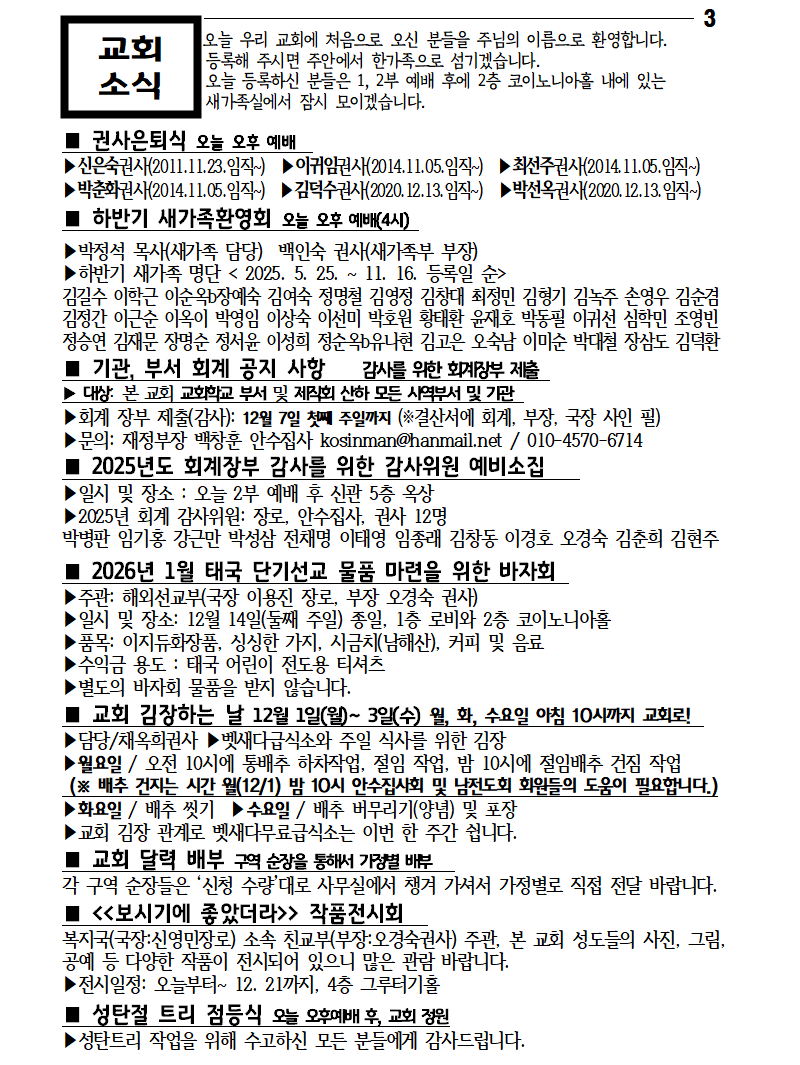 2025-11-30 다섯째 주일 주보 작성자박윤숙|작성시간25.11.28|조회수354 목록 댓글 0 글자크기 작게가 글자크기 크게가 다음검색 현재 게시글 추가 기능 열기 북마크 신고 센터로 신고 댓글 댓글 0 댓글쓰기 답글쓰기 댓글 리스트