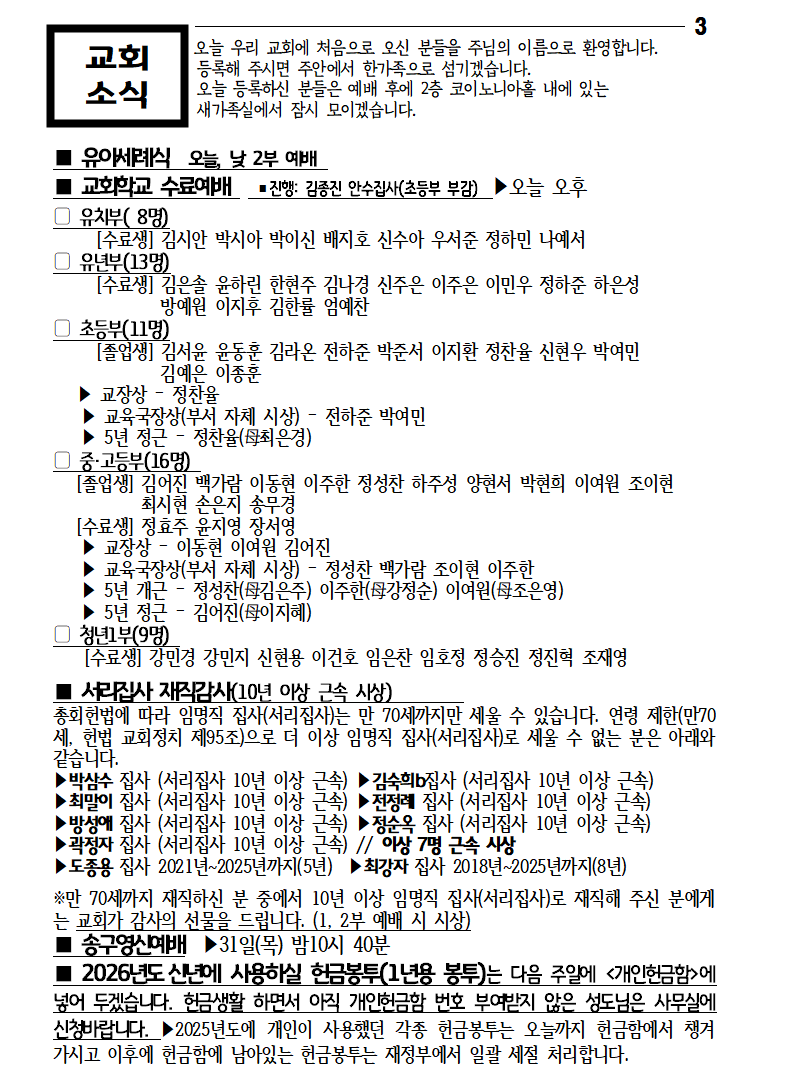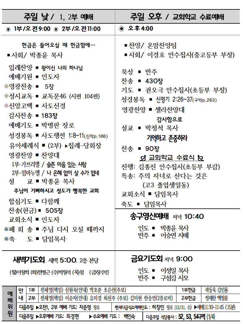 2025-12-28 넷째 주일 주보 작성자박윤숙|작성시간25.12.26|조회수288 목록 댓글 0 글자크기 작게가 글자크기 크게가 다음검색 현재 게시글 추가 기능 열기 북마크 신고 센터로 신고 댓글 댓글 0 댓글쓰기 답글쓰기 댓글 리스트