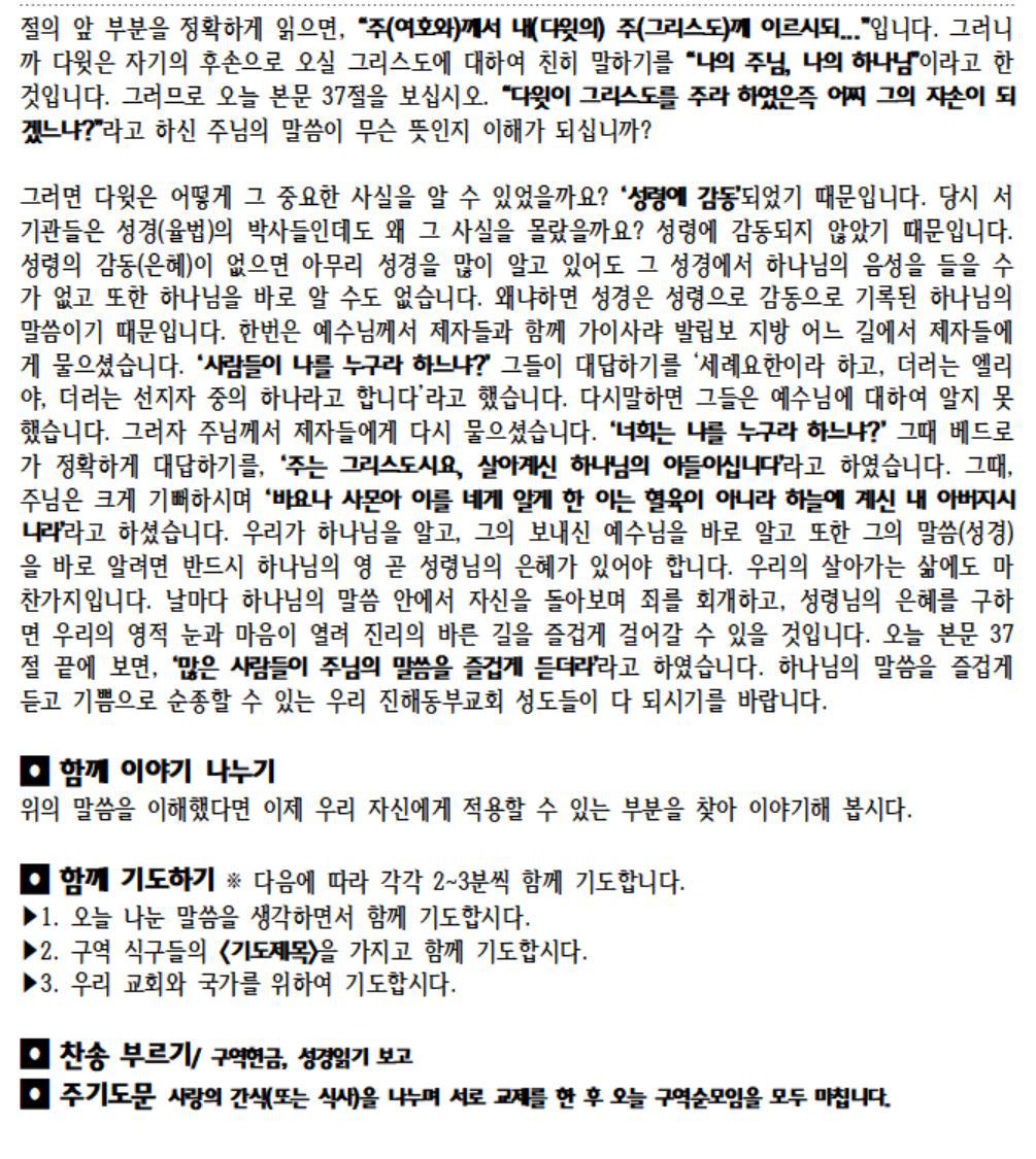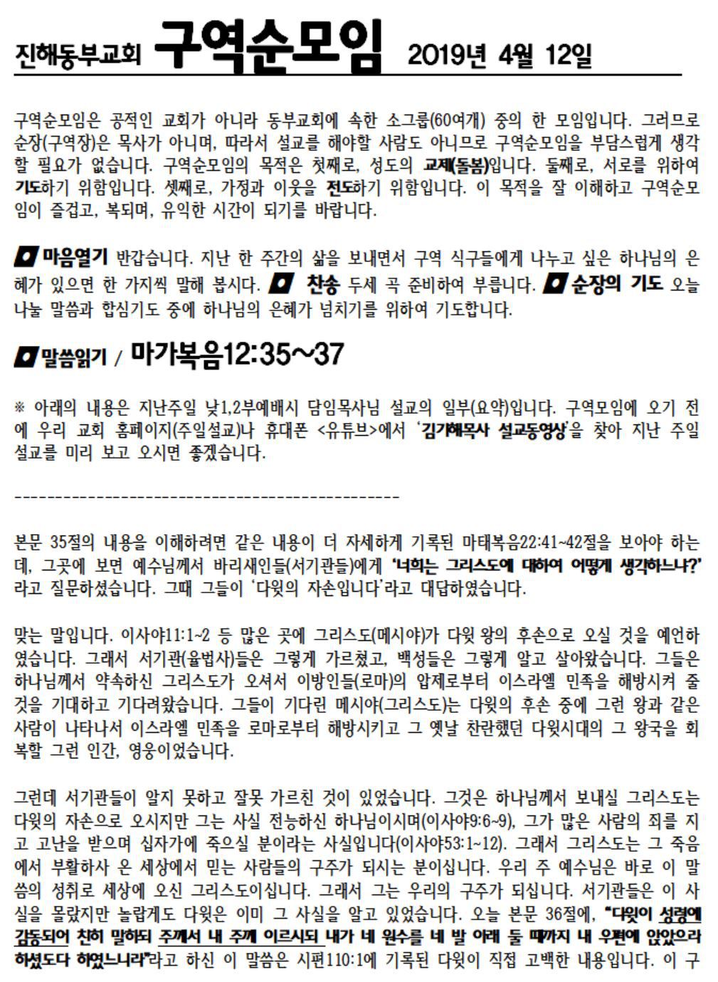 2019-04-12 진해동부교회 구역순모임 교재 작성자金基海|작성시간19.04.09|조회수192 목록 댓글 0 글자크기 작게가 글자크기 크게가 2019-04-12 막12장35-44.hwp 첨부파일첨부된 파일이 3개 있습니다. jpg 파일 2019-04-12a.jpg 다운로드 jpg 파일 2019-04-12b.jpg 다운로드 hwp 파일 2019-04-12 막12장35-44.hwp 다운로드 다음검색 현재 게시글 추가 기능 열기 북마크 공유하기 신고 센터로 신고 댓글 댓글 0 댓글쓰기 답글쓰기 댓글 리스트