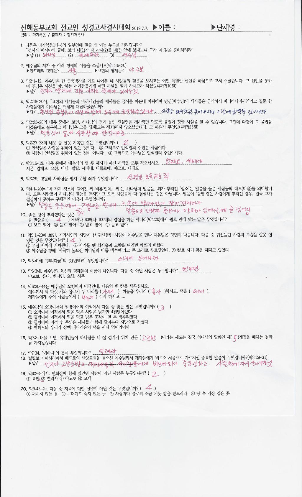 이번에는 시험 범위가 마가복음이어서 좀 쉽게 도전을 하게 됐는데
