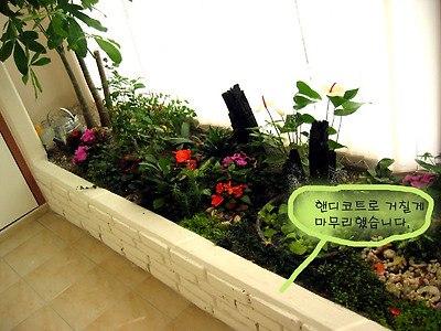 자 완성입니다... 마지막으로 핸디코트를 입혔습니다... 원래 백시멘트로 깔끔하게 마무리하면 되는데 저는 벽돌칼라가 맘에 안들어서 핸디코트를 사다가 거칠게 마무리했습니다. 그랬더니 훨씬 깜끔한 분위기가 납니다...^^ 정말 힘든 과정이었지만...넘넘 뿌듯한 베란다와 코지코너였습니다... ![]() |