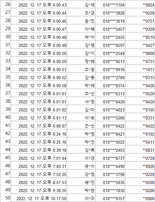 파트.2 선착순 50분 선정 리스트 입니다!