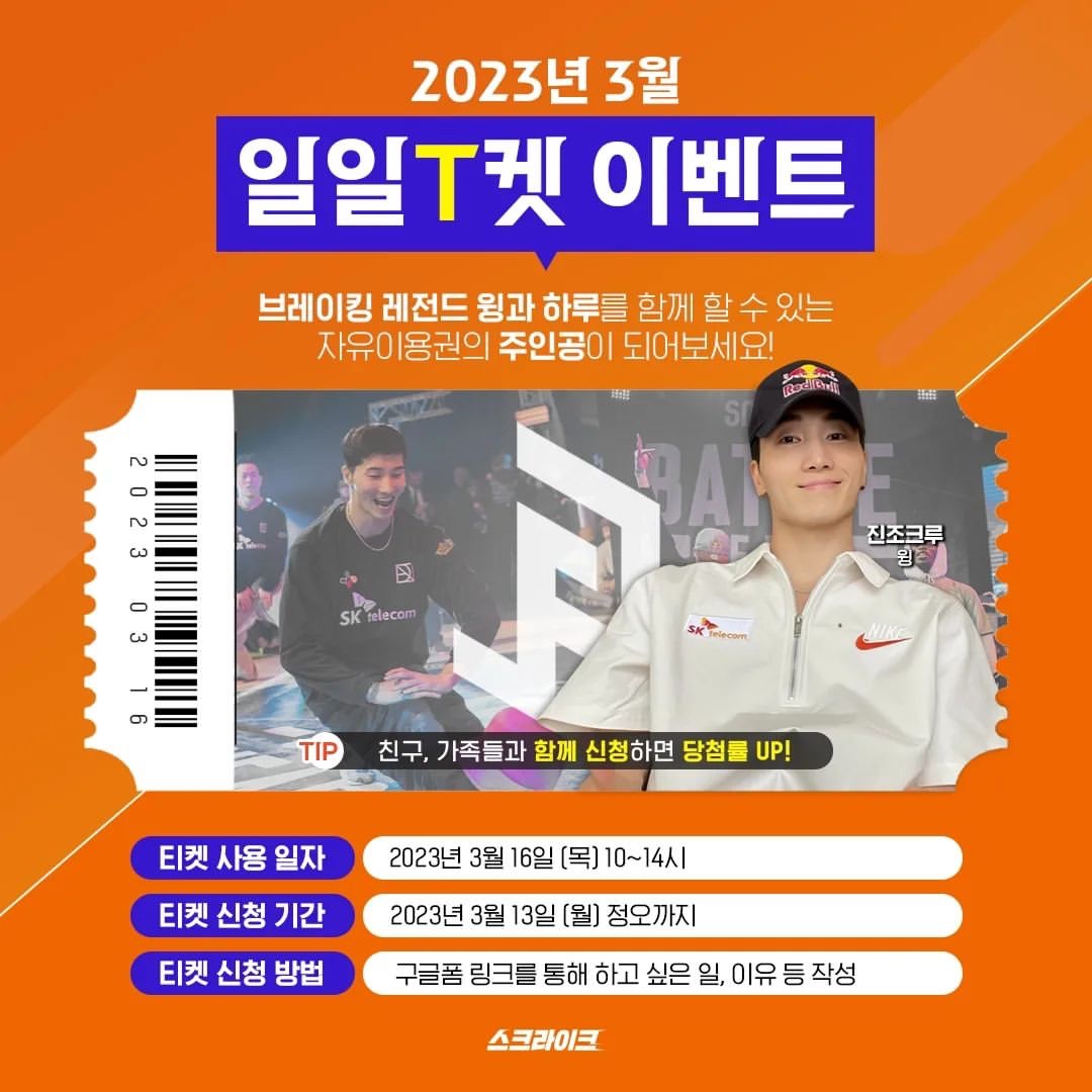 브레이킹 레전드 윙과 하루를 함께할 수 있는 일일T켓의 주인공이 되어보세요!