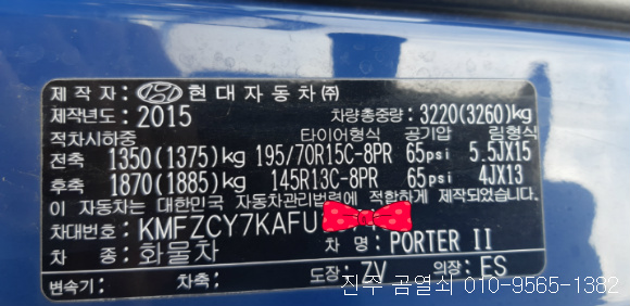 차량은 2015년식 포터2로