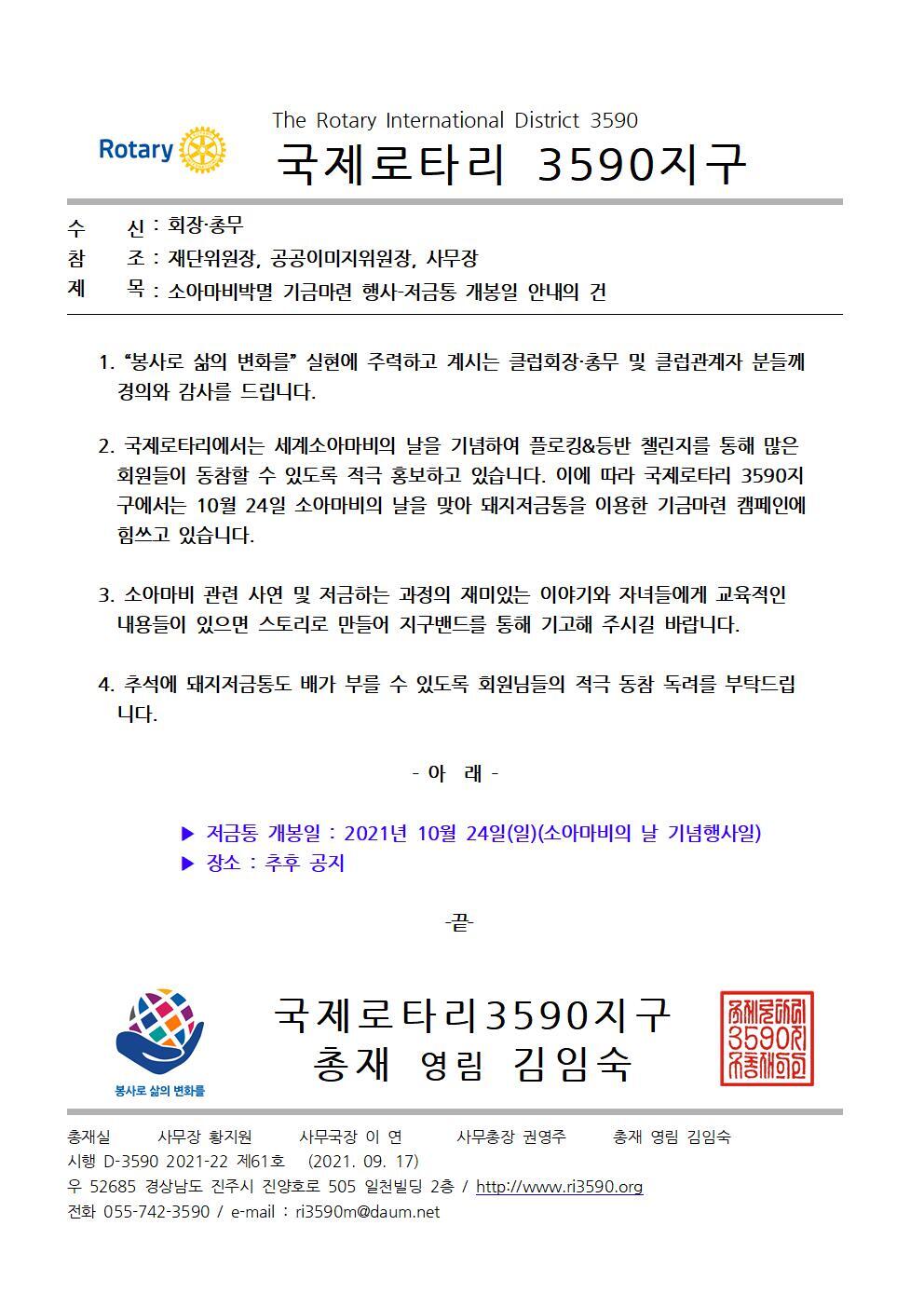 소아마비박멸 기금마련 행사 - 저금통 개봉일 안내의 건 작성자진주강주로타리클럽|작성시간21.09.23|조회수13 목록 댓글 0 글자크기 작게가 글자크기 크게가 다음검색 현재 게시글 추가 기능 열기 북마크 공유하기 신고 센터로 신고 댓글 댓글 0 댓글쓰기 답글쓰기 댓글 리스트