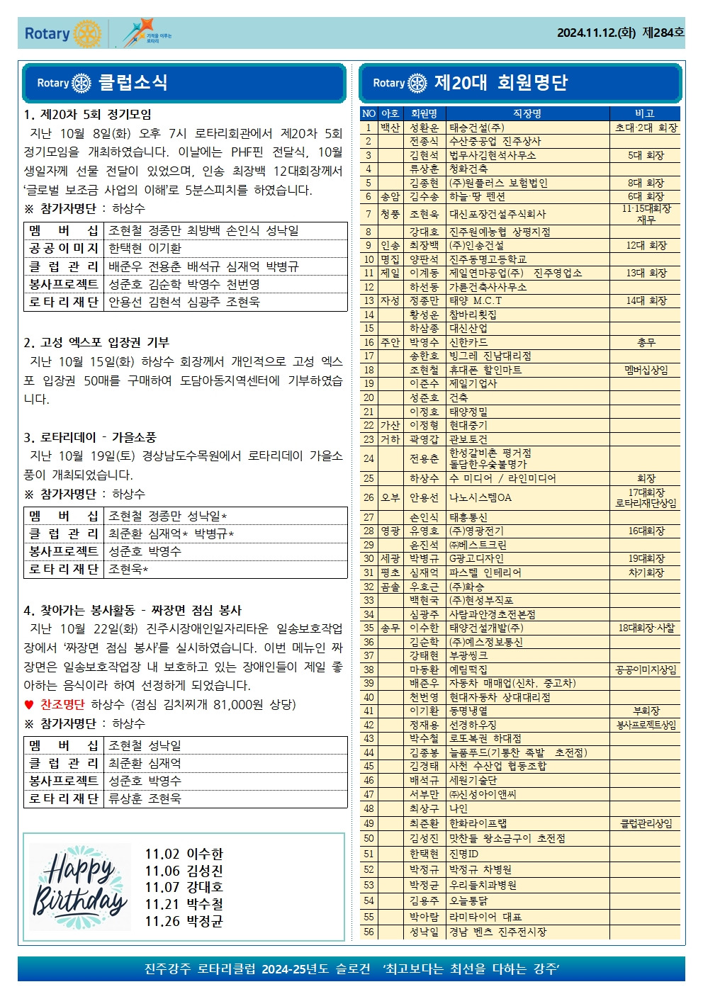2024-25년도 제20대 주보 (284호, 2024.11.12) 작성자사무장|작성시간24.11.13|조회수1 목록 댓글 0 글자크기 작게가 글자크기 크게가 다음검색 현재 게시글 추가 기능 열기 북마크 공유하기 신고 센터로 신고 댓글 댓글 0 댓글쓰기 답글쓰기 댓글 리스트